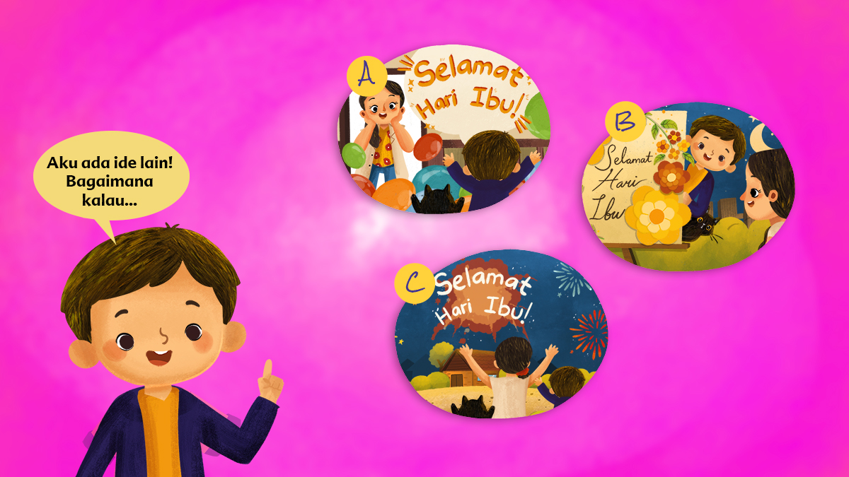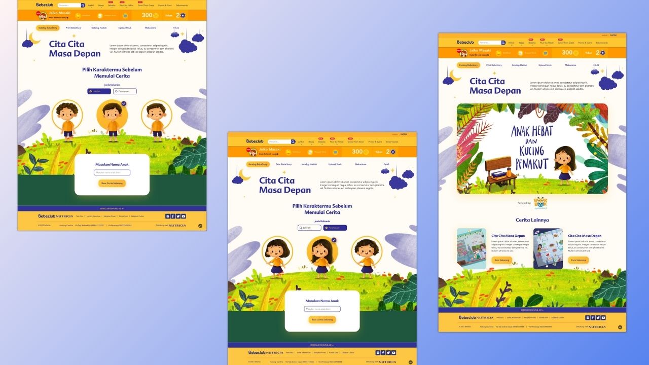 Interactive digital storybook created to embeded on client website, there are 6 storybooks with different story. User can choose the character, change character name and determine the storyline. At the end, users can download the storybook as PDF file.